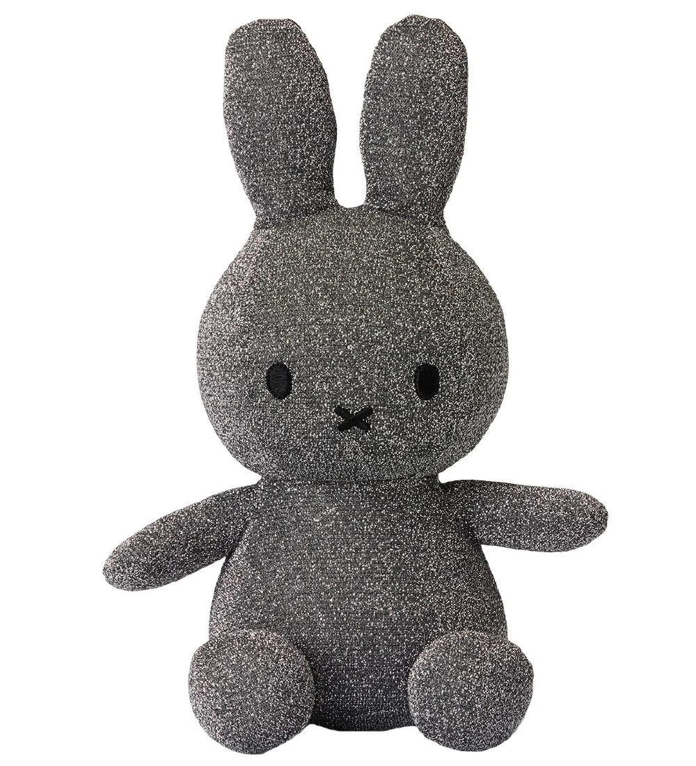 Skøn Bon Ton Toys bamse i sølvglimmer, der forestiller den søde kanin Miffy.