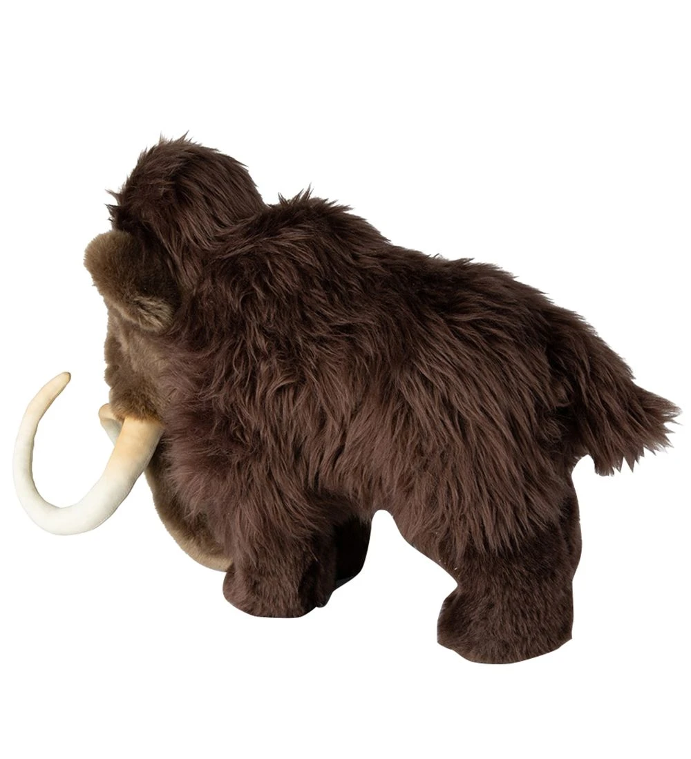 Skøn Bon Ton Toys bamse, der forestiller en mammut i mørkebrun med lang pels og lange stødtænder.
