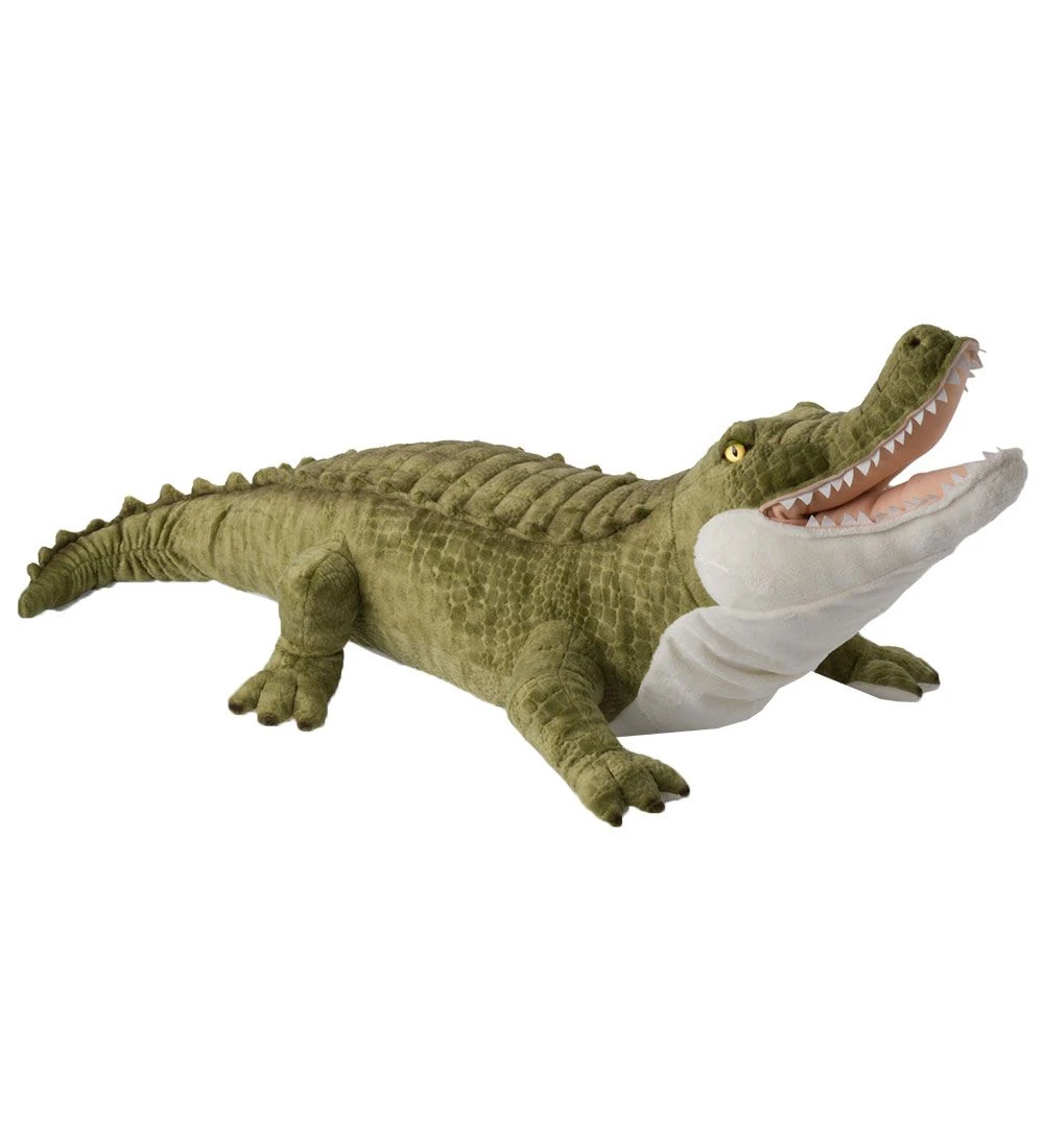 Skøn Bon Ton Toys bamse, der forestiller en krokodille i en ekstra stor version.