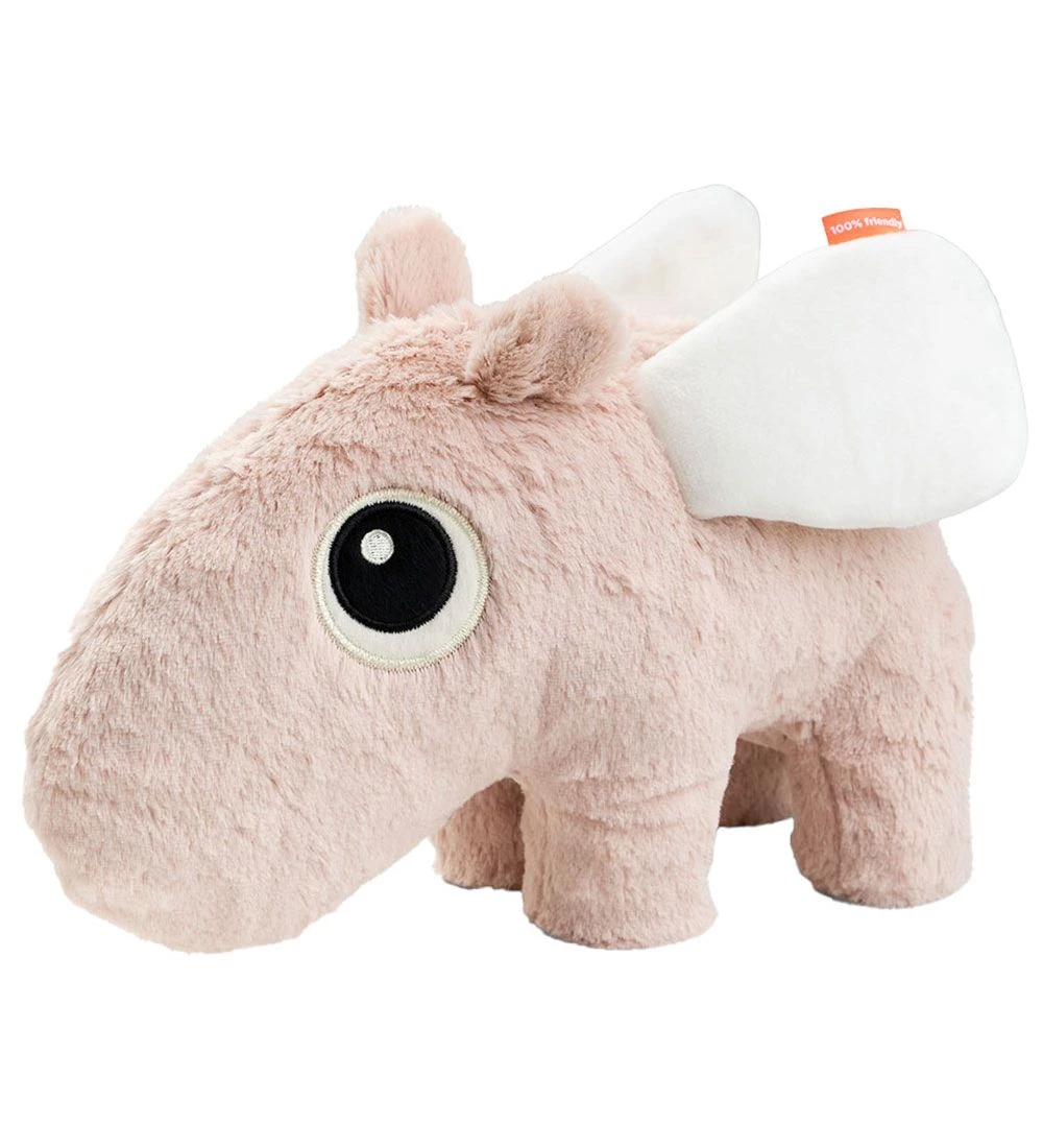 Blød Done by Deer bamse formet som en sød flodhest i svag rosa med hvide vinger.