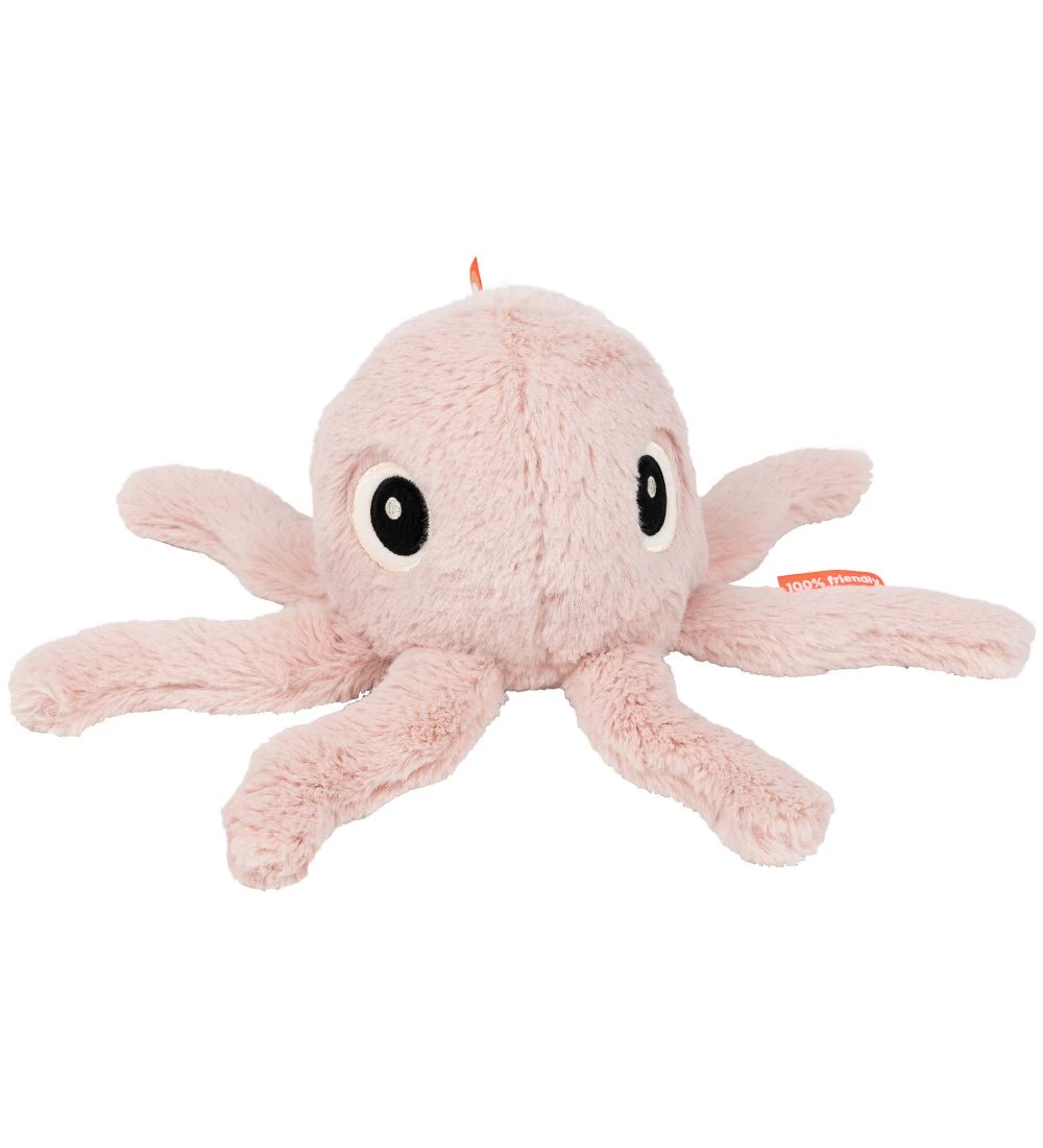 Sød Done by Deer bamse formet som en babylyserød, syvarmet blæksprutte med to store øjne fortil.
