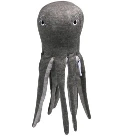 Sjov Filibabba bamse i grå, med form som en blæksprutte. Fortil er der broderede øjne i sort og hvid.