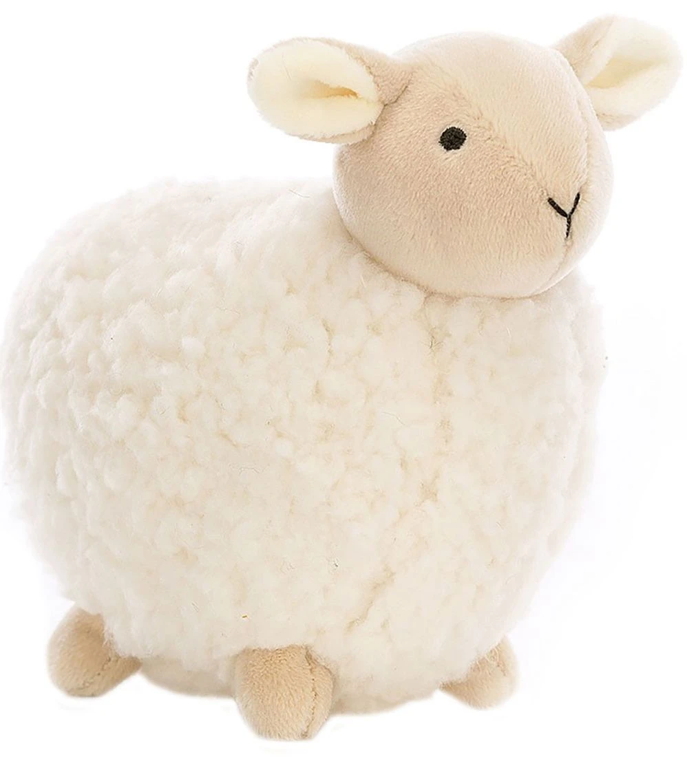 Skøn Jellycat bamse med form som et lille lam i hvidt plys.