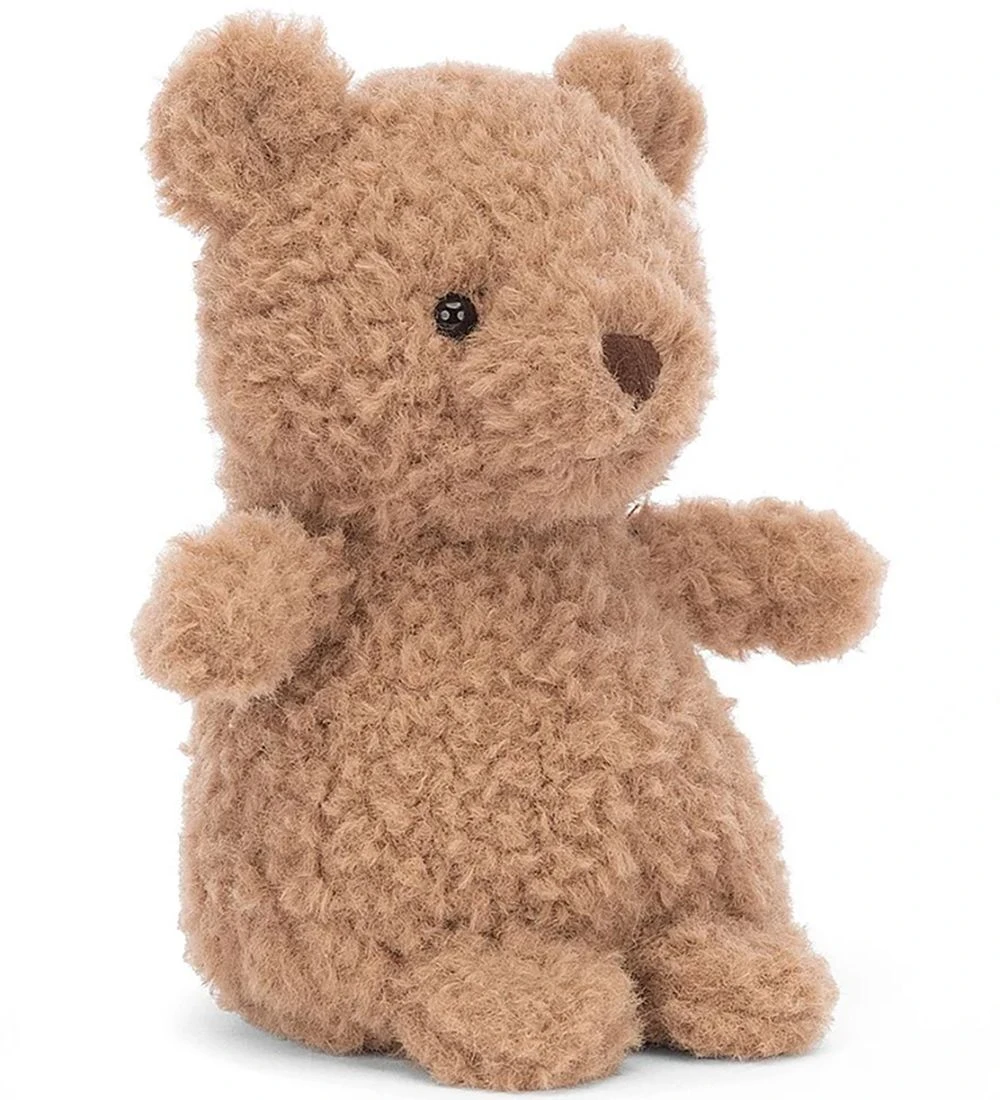 Jellycat bamsen er super blød, og den har ekstra tyngde i bunden, så den kan sidde selv. Bamsen er lige til at lege med, kramme og putte med ved sengetid.