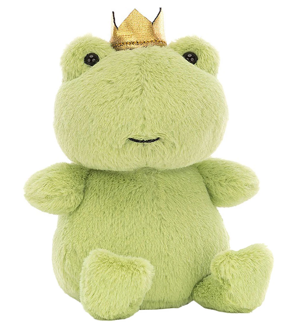 Skøn Jellycat bamse formet som en grøn frø med guld krone.