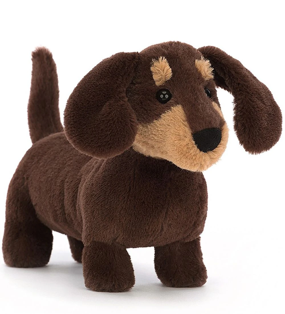 Skøn Jellycat bamse formet som en brun gravhund.