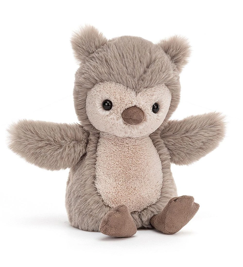 Skøn Jellycat bamse formet som ugle i gråbrune nuancer.