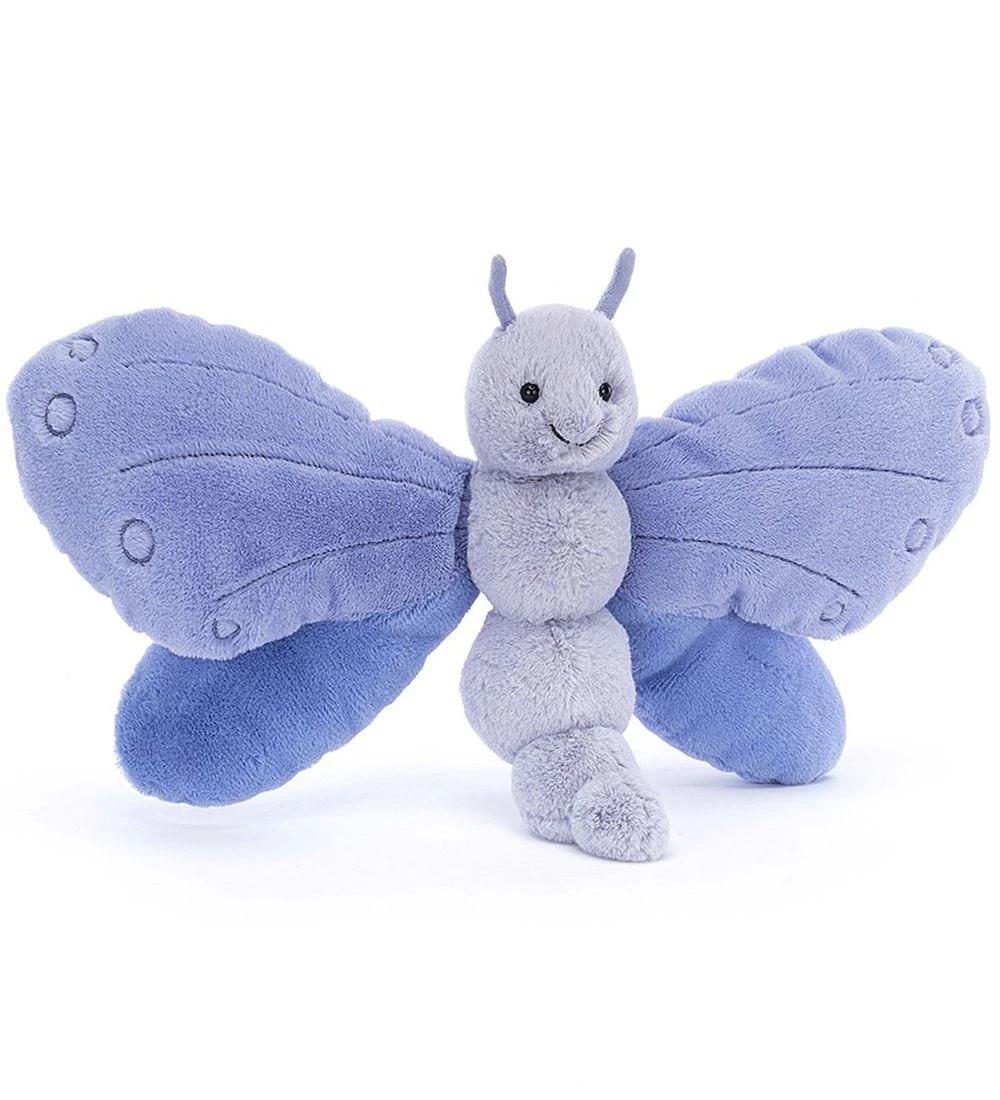 Skøn Jellycat bamse formet som en lilla sommerfugl.