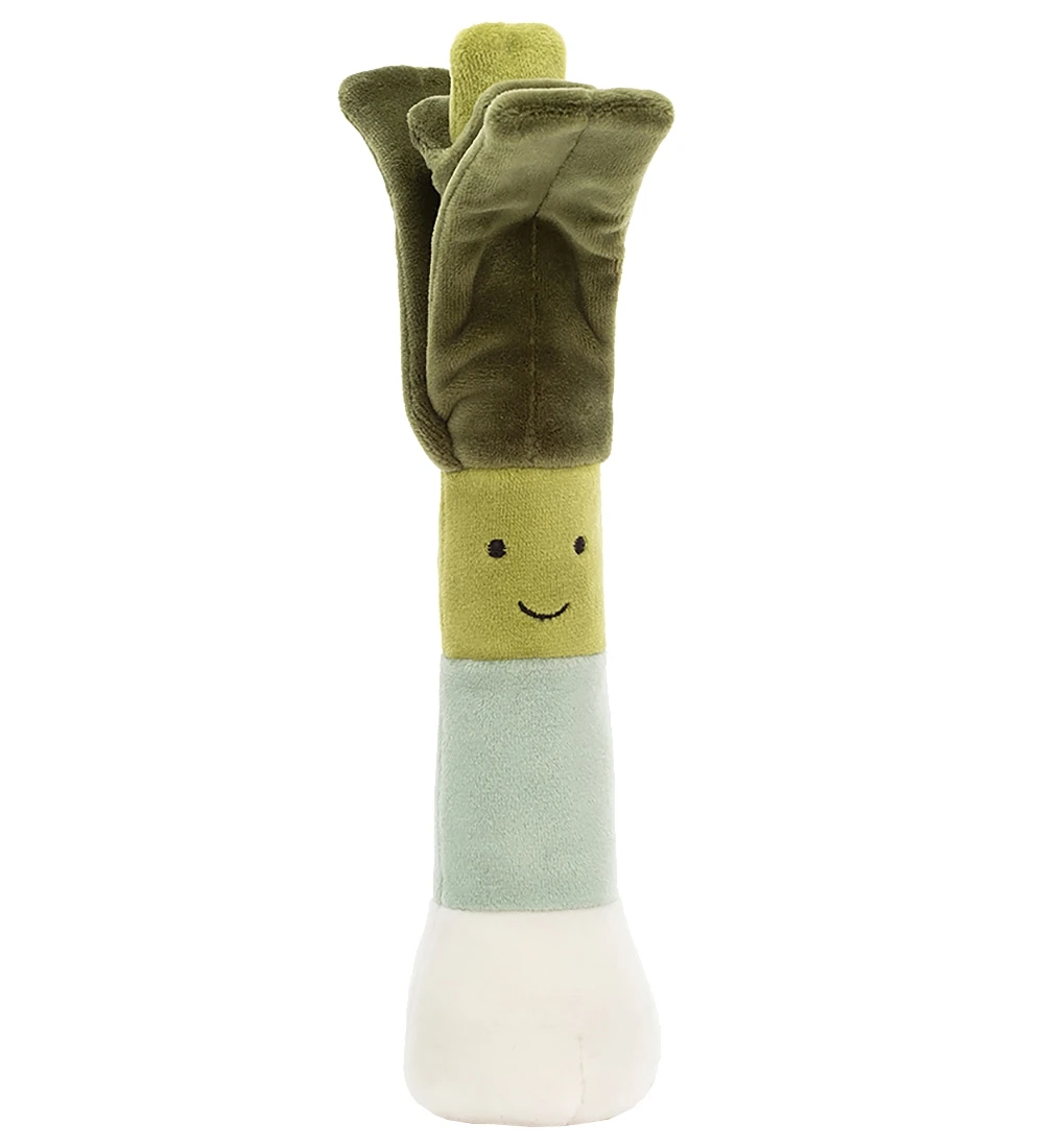 Sjov Jellycat bamse formet som en porre i grønne nuancer..