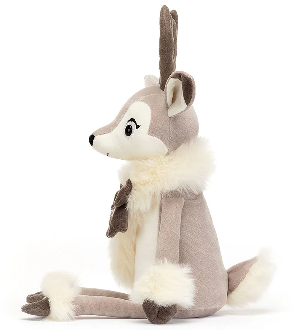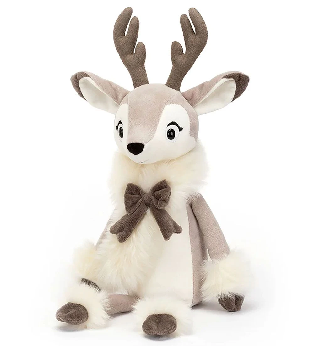 Festlig Jellycat bamse formet som et beige og hvidt rensdyr.