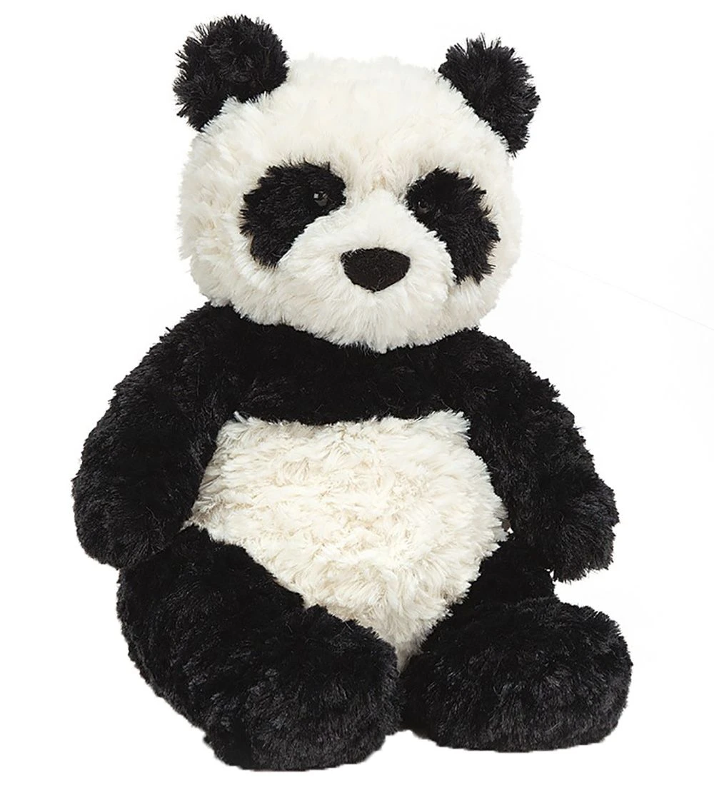 Fin Jellycat bamse formet som en panda i sort og hvid.