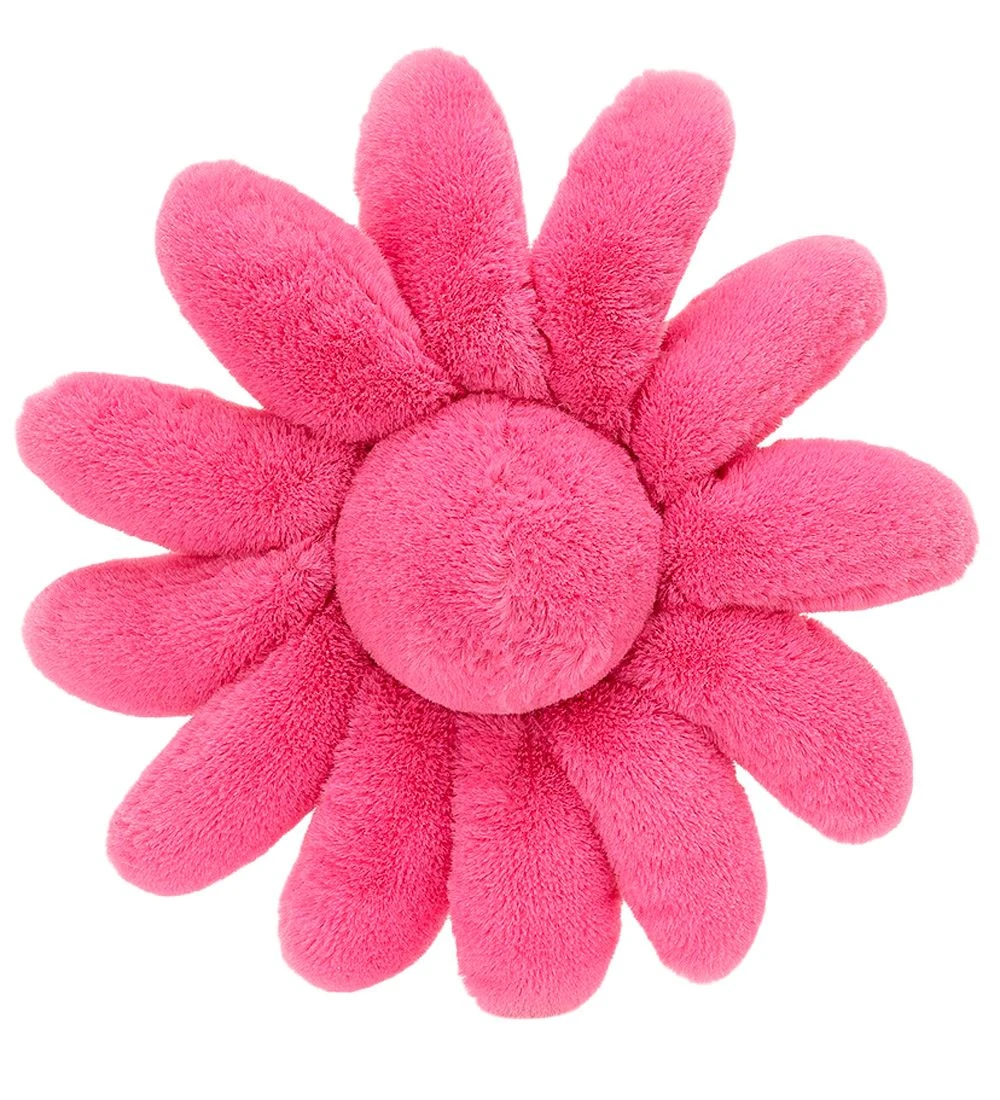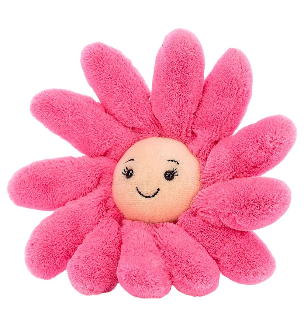 Skøn Jellycat bamse formet som en gerbera i pink plys, og i midten er den pudderrosa med et smilende ansigt.