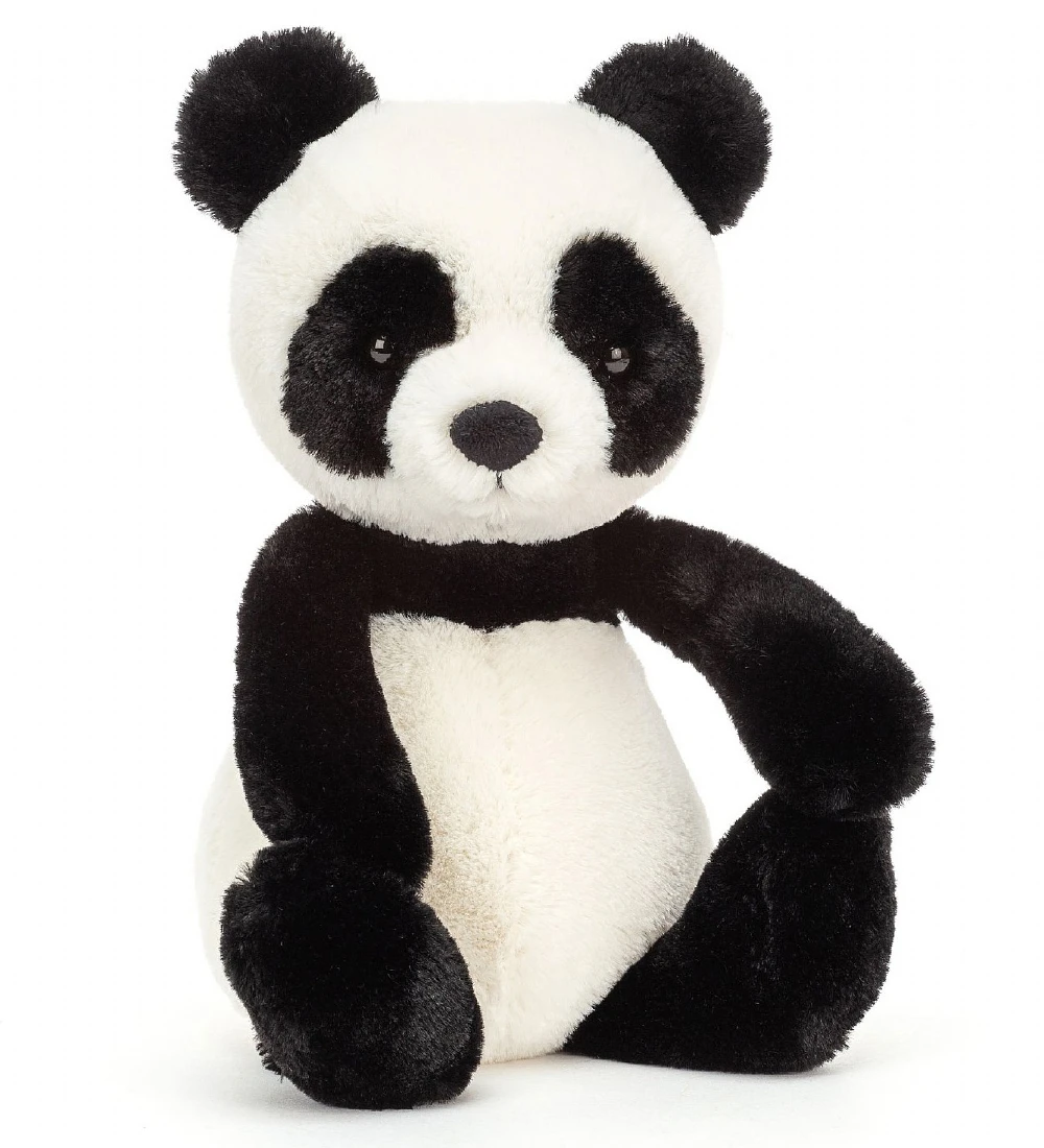 Sød Jellycat bamse i formet som en panda i sort og hvid.