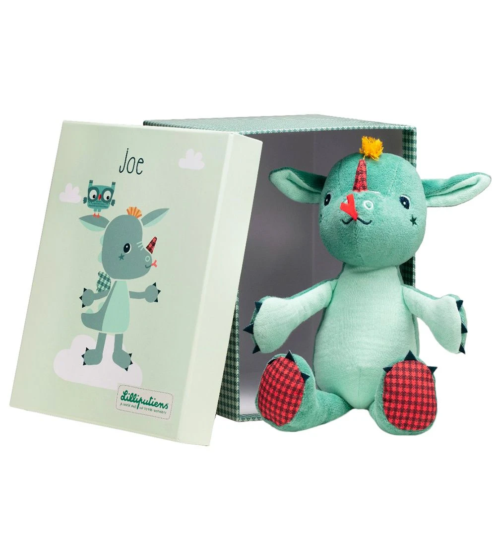 Fin Lilliputiens bamse i den søde drage Joe. Joe er grøn og har fine detaljer i farvede tern.