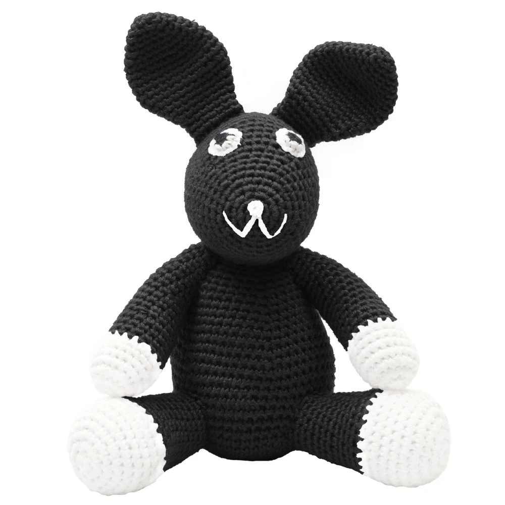 NatureZoo bamsen har form som en kanin og er hæklet i en lækker bambuskvalitet. Bamsen har et blødt polyesterfyld, og der kommer en lille pibelyd fra bamsen, når den trykkes let på maven.