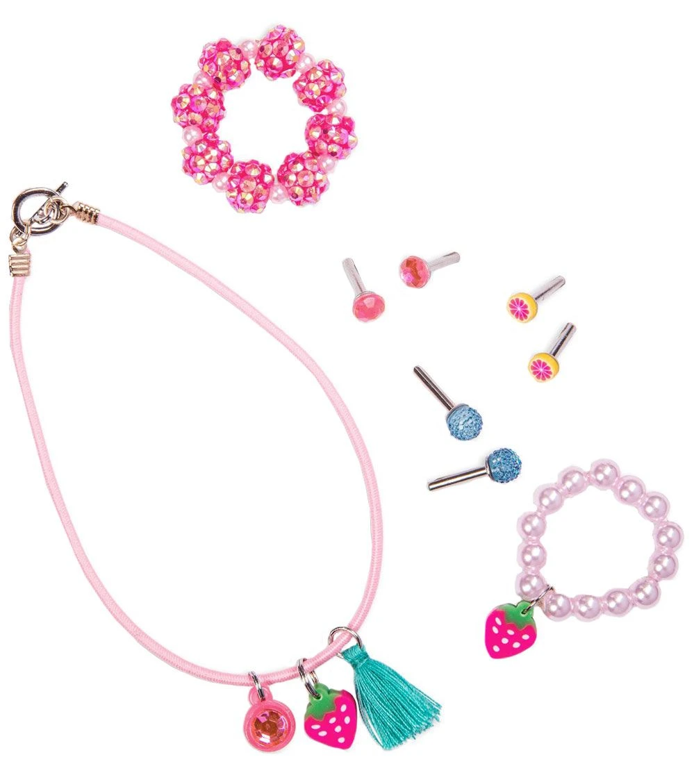 Dukkens ører er med huller til øreringe, som der medfølger tre par af. Yderligere medfølger to armbånd, en halskæde og et smykkeskrin til at opbevare smykkerne i. I smykkeskrinet er der et spejl i låget.