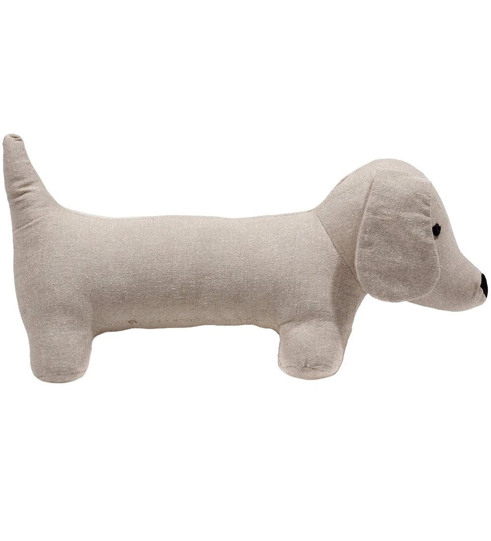Sød Pine Cone bamse i ensfarvet beige med form som en lang hund.