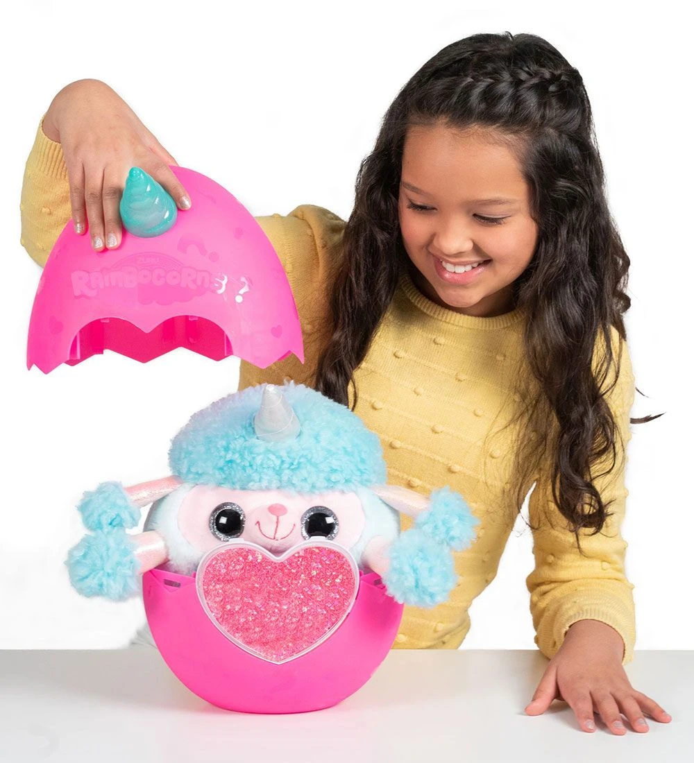Rainbocorns ægget indeholder en bamse, og der medfølger flotte fevvinger, som barnet selv kan have på.