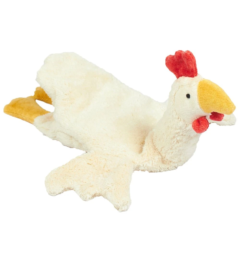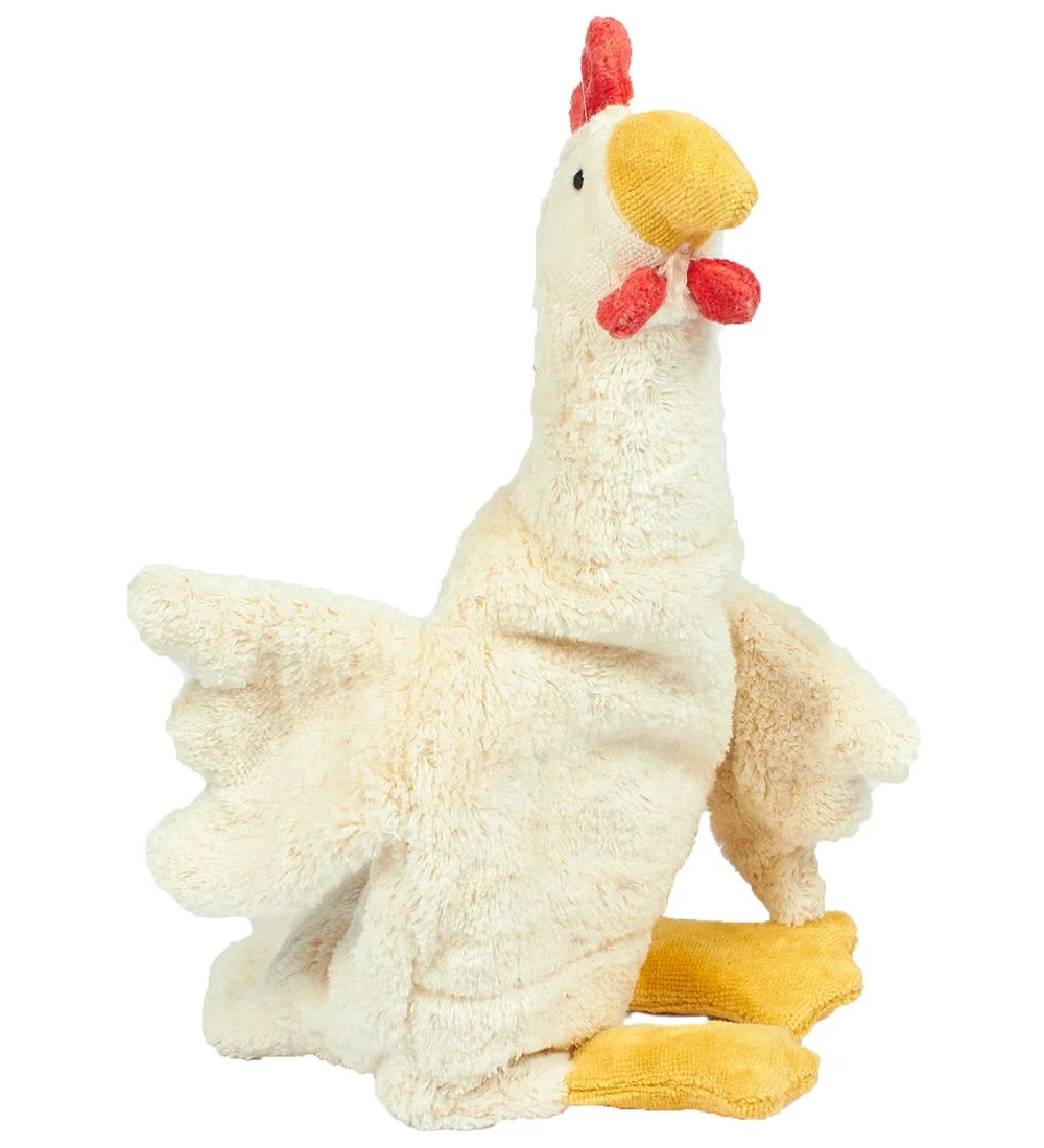 Sjov Senger Naturwelt varmepude formet som en hvid høne med næb og ben i gul og røde detaljer ved hovedet.
