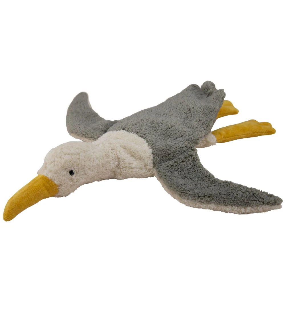 Skøn Senger Naturwelt varmepude formet som en måge, der er grå på oversiden og hvid på undersiden og på hovedet og har orange ben og næb.