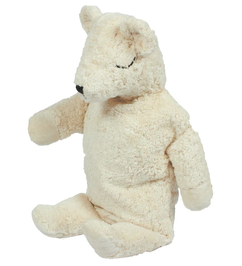 Senger Naturwelt varmepuden er lavet af bomuldsplys og uld, og indeni har den en pose med skaller af spelt, som kan varmes, så bamsen er lun og rar at putte med, når barnet f.eks. har mavepine, er forkølet eller bare har brug for at kramme en velkendt ven.
